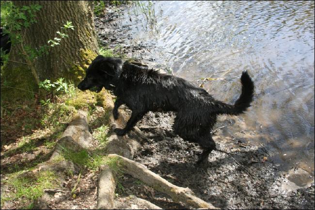 Hier hat mein Hundespassminister mal auf seine Frau gehört. Sie kannte nämlich einen ganz tollen Ort, wo ich spielen und schwimmen kann, ohne das wir viel gestört werden. Vom Parkplatz muss man 20 Minuten laufen. Mein Hundespassminister sagt immer, wenn die Menschen nicht mit dem Auto vorfahren können, gehen sie gar nicht. |
